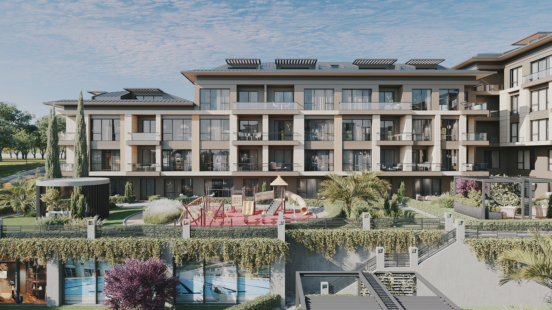 Neighboring the valley of life in Beylikdüzü, Casablu Valley, where green and peace meet, offers a modern and comfortable future with 78 exclusive family concepts in horizontal architecture. It adds value to your life with its sea view, proximity to West Marina Istanbul, large landscape areas and rich social facilities.